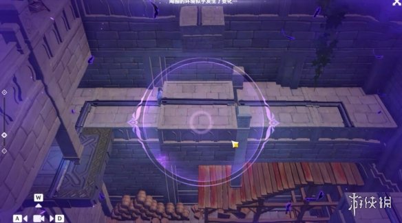 出门之后先顺着左手边的楼梯往下走,启动装置拼接上方的道路。