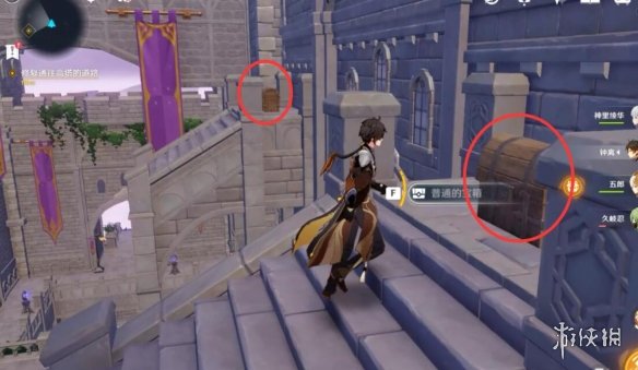 利用两个装置分别拼接两个楼梯,就能获得我们的第二和第三宝箱啦。