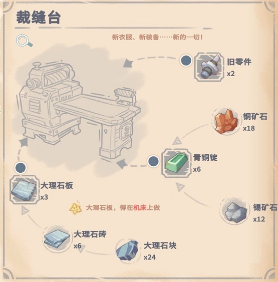 大家晓得沙石镇时光裁缝台怎么建造吗?今天小编就来介绍沙石镇时光裁缝台的建造配方及产出介绍,感兴趣的快跟小编一起来瞧瞧吧,赶紧来瞧瞧吧呢。