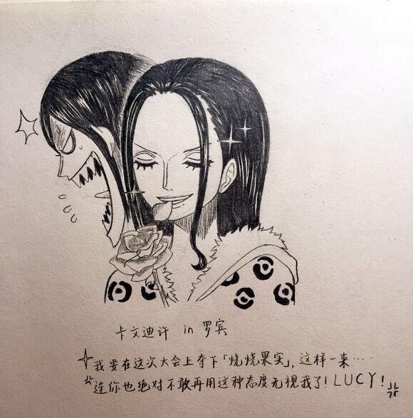 女帝波雅汉库克是路飞的忠实粉丝,当罗宾与女帝交换了身体,女帝用着罗宾的身体兴致冲冲的对路飞说:“路飞!我愿意跟随你、、、到任何地方去!”不得不说,女帝的气质放到罗宾女神身上,让典雅的罗宾变得更贴近生活。