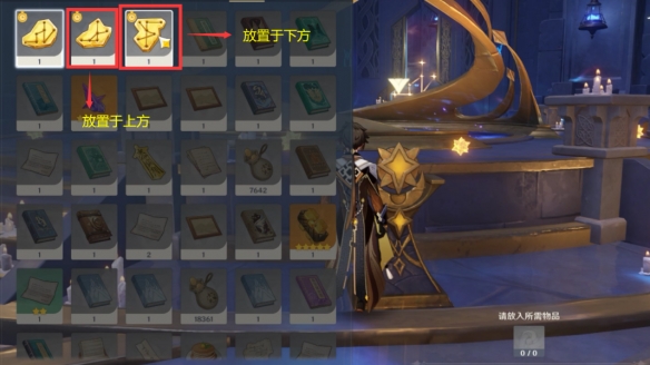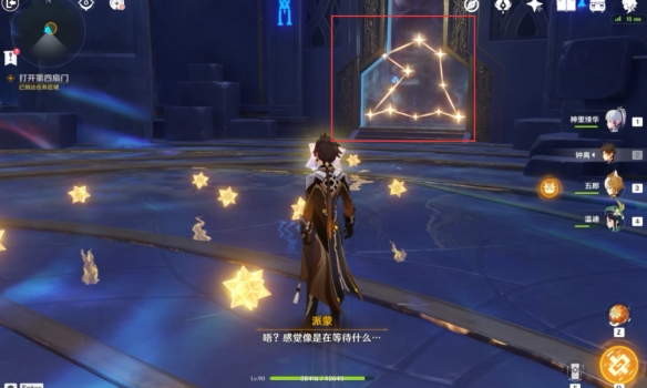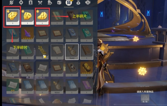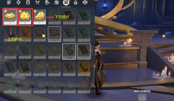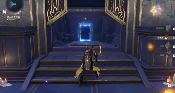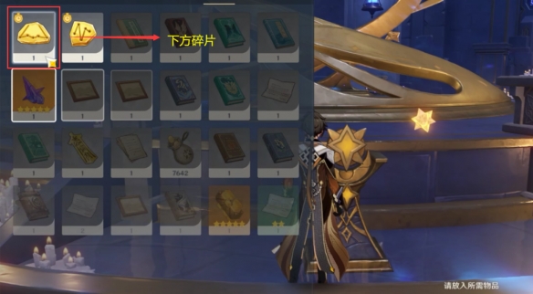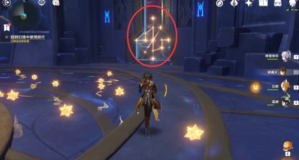 如图所示装入碎片打开门进入秘境房间。