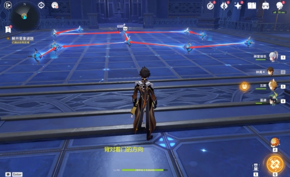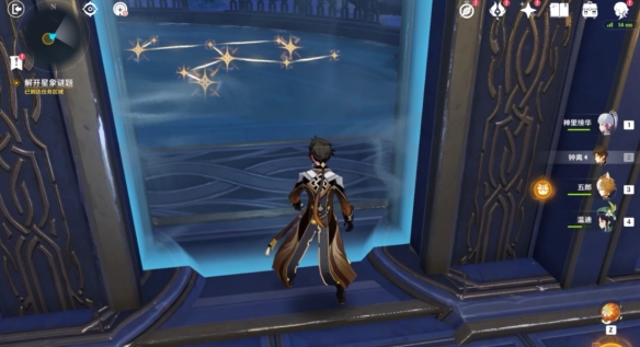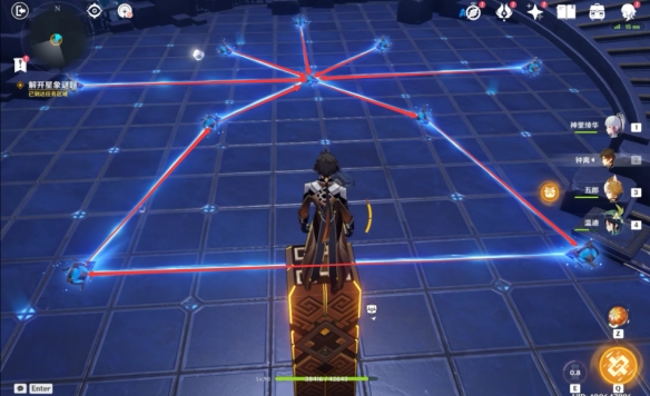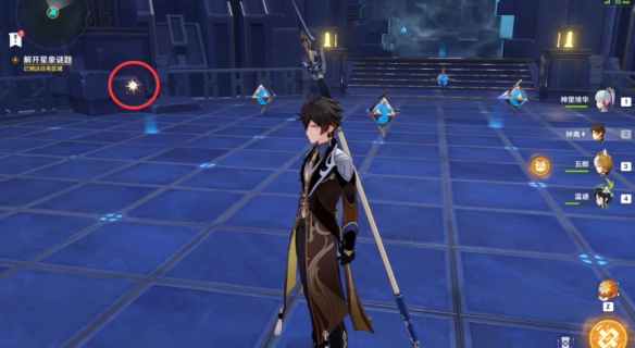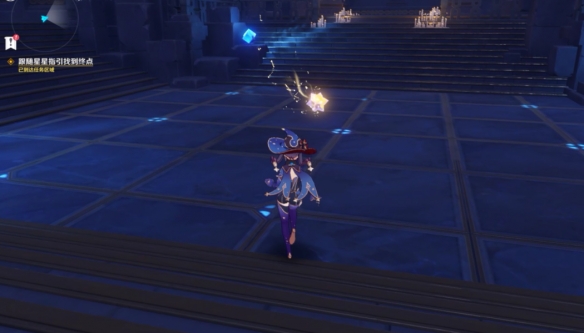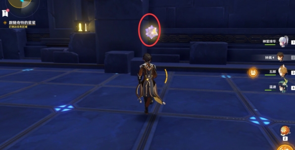 根据剧情的任务对话提示,今天的秘境是属于莫娜的占星术士秘境,在找到一个占星术的星星一样的图标之后进入秘境。