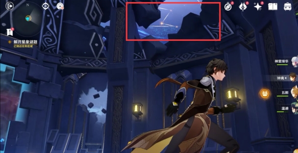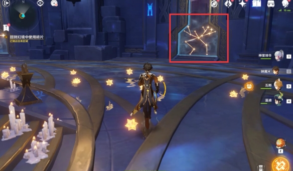 接着我们找到这个有箭头指着的星辰影灯处装入星象碎片,打开屏障进入房间。