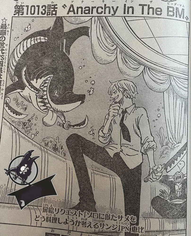 如果你一直在追海贼王漫画,那么你肯定了解最新话的漫画扉页内容,山治左手拿着菜刀,对着一只“三刀流”的鲨鱼打量着,似乎要将这只鲨鱼做成美食,而在一旁的索隆早已酣然入梦。“三刀流”鲨鱼指的自然是索隆,索隆就是三刀流的剑客,而且代表动物也刚好是鲨鱼,结合索隆在本话的表现来看,显然尾田是准备让其“离线”一段时间。