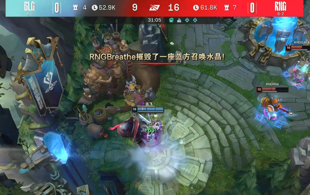 从这一场比赛双方的表现来看,虽然被戏称为“双陈之战”,但事实上,双方上单的表现并没有成为决定胜负的因素。而RNG能够顺利击败BLG,Wei与小虎的中野联动成为了最关键的一环。在第一局比赛中,拿出波比的Wei可以说是节奏拉满。并且,Wei波比多次在团战中的闪现“壁咚”以及精准的大招释放,都起到了关键性的作用。当然了,除了Wei的波比之外,GALA的金克丝同样打出了非常亮眼的表现,最后更是达成了超神的战绩。不过有意思的是,在第一局比赛的最后,或许是因为BLG的上单Bin曾是RNG的一员,作为前队友,RNG的队员们似乎并不想“击杀”他。特别是Wei,还直接放了一个大招将Bin锤到了泉水内,不让他出来。而看到这一幕时,RNG的前职业选手姿态则是在直播中表示,“我真的哭死,Wei真的太温柔了。”