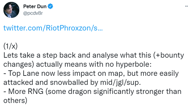龙魂的加强,会让劣势方压力巨大,Peter表示之前版本赏金机制的改动,加上这个版本的改动,翻盘局可能会因此消失。