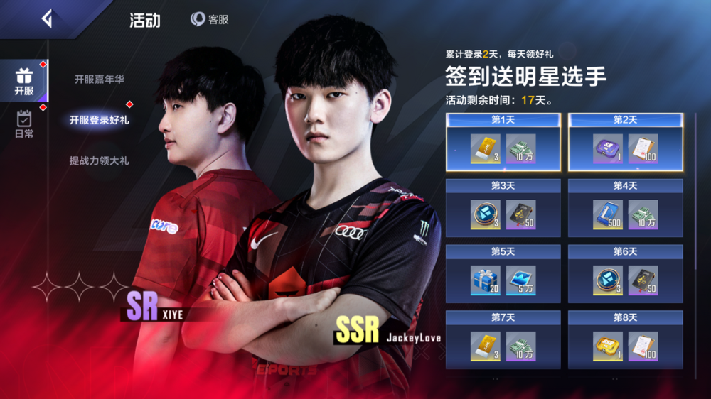 SSR选手卡人人都可以轻松获取。跟随游戏的开服签到活动,玩家可以在第二天签到时获赠SR选手卡Yagao、FoFo、xiye3选1,第八天签到时获赠SSR选手卡Photic、GALA、JackeyLove、Light、Lwx 5选1。开服嘉年华活动中,第一周即可在SSR辅助Ming、Mark、Missing、Meiko、Crisp 5选1,而在开服首充6元的活动中,玩家也可以在这五位SSR辅助中再任选其一!