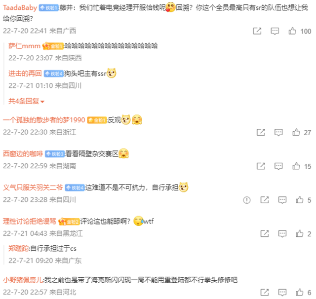 随后,LPL也遇到了问题。RA所在地区网络波动,期间选手掉线,短暂的暂停之后游戏继续,没有进行时空回溯,BLG扩大优势获胜。RA的申诉被打回来,观众质疑联盟保BLG,建议他们修改规则。
