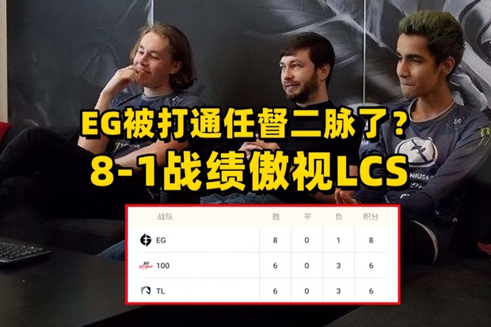 来到北美赛区,赛程进度和LEC是保持同步的,都已经完成了9场比赛,其中领跑积分榜的是EG战队,在MSI输给RNG之后,EG似乎开窍了,在北美赛区疯狂屠戮,将TL、100T这些队伍按在地上摩擦,目前战绩8-1,而100T和TL则是保持着相同的比分,均是6-3的情况下并列联赛第二,相比起LEC,LCS就没那么胶着了。