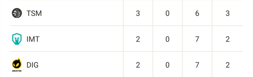 LCS目前没有已经确定被淘汰的队伍,成绩最差的OMT和DIG,目前都是2-7的战绩,晋级季后赛的可能性存在,但只能说机会渺茫,除非前面的队伍出现连败,自己打出连胜才有机会,另外TSM目前拿到了3-6的成绩,这支LCS的银河战舰算是坠机了,和垫底的两支队伍一样,有晋级的可能性,但概率微乎其微。