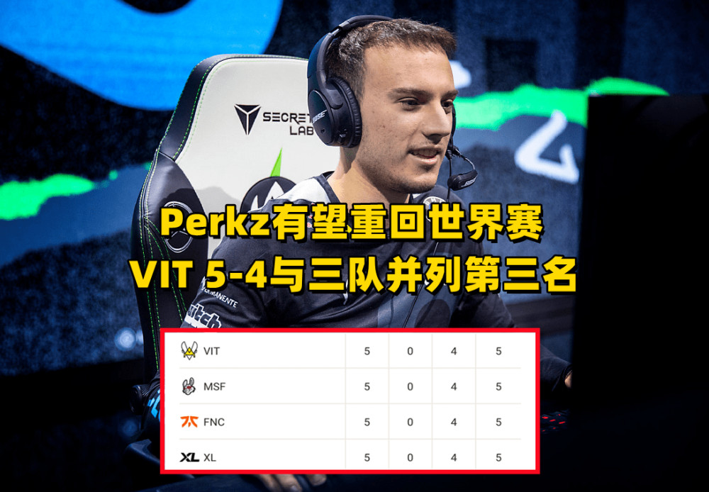 万众瞩目的VIT战队,在夏季也打出了不错的成绩,目前是5-4位居联赛第三,Perkz有再次闯进季后赛的机会,之所以说特别胶着,原因就在于目前的LEC,有4支队伍都是5-4,兔子队MSF、老牌豪门FNC、新晋强队XL和VIT保持着一样的战绩,和第一第二的最大分差也仅有2分,所以这几支战队,都是有机会反超RGE和MAD的。
