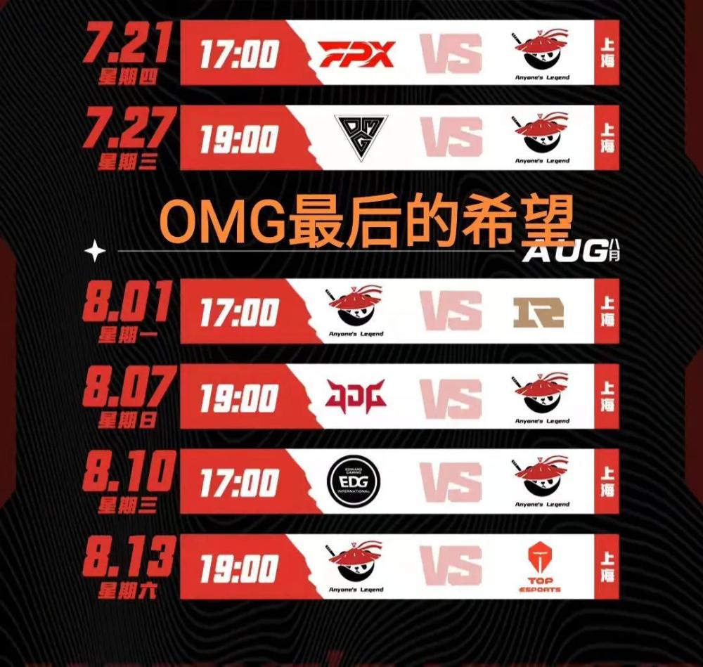 Al战队这段时间的夏季赛发挥真的已经非常出色了,大量的粉丝也为他们摇旗呐喊,如果7-3的成绩在后期都无法取得,季后赛的名额的话,那么对于al战队来说绝对是一个非常大的打击,所以希望他们抓住OMG战队这个机会,如果错过的话,在最后一周的比赛中真的很难拿到胜利。