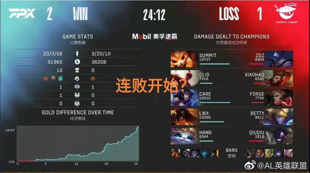 正当大家对al战队夸赞有加的时候,一些玩家发现了一个比较严重的问题,接下来,al战队将会进入到魔鬼赛程。开局他们拿到了7-3的好成绩,和fpx战队的比赛,是一个转折点,这场比赛如果拿下,那么al战队晋级季后赛的希望将会大幅度提升,如果输掉这场比赛,那么al战队很有可能会无缘季后赛,结果在和fp x战队的比赛中,al战队就出现了很严重的团队,配合问题中单选手蕉太狼也是操作变形。