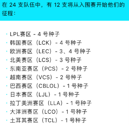 比赛举办地和场馆在Riot第一次发布2022全球总决赛内容时就已经提到,本次只是详细到时间安排。其他关于2022全球总决赛的内容,重要的部分是参赛战队数量和拥有额外参赛资格的赛区都有哪几个。