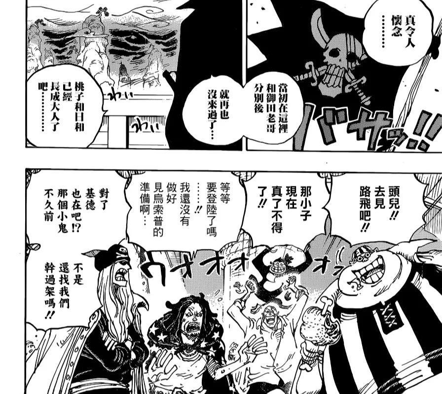 红发海贼团忽然出现在和之国近海,他们的船只正在进入和之国,红发也不是第一次进入和之国了。早期跟随罗杰海贼团进入和之国,如今他乘坐自己的船只进入和之国,物是人非。红发香克斯知道凯多和大妈已经败了,他才敢进入和之国,否则就是入侵四皇的地盘。红发海贼团的船员很高兴,知道路飞击败凯多,他已经成为伟大的海贼了。