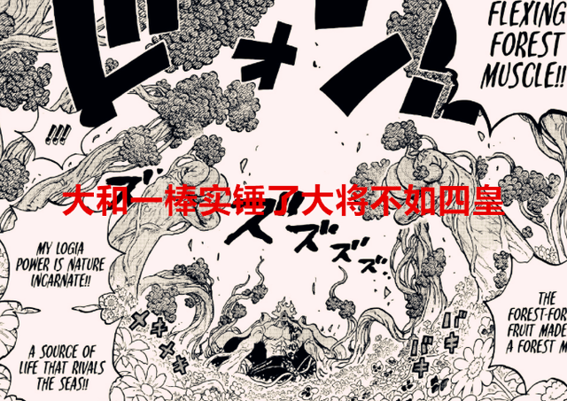 之前都说大将和四皇势均力敌,其实从这里就能看出,大将和四皇的差距,大和用棒子击打凯多的时候,凯多丝毫不痛,甚至还被凯多反杀,死死地压制住大和,这就是四皇的实力。不管你是不是亲生女儿,但是你挑战我的权威就不行,必须要把你给拿捏了,而大将就没有这样的威严,特别是绿牛,他连黄猿的逼格都比不上,就不用谈他的战斗力有多强了吧,正如网友所说,是真正的三流货色。