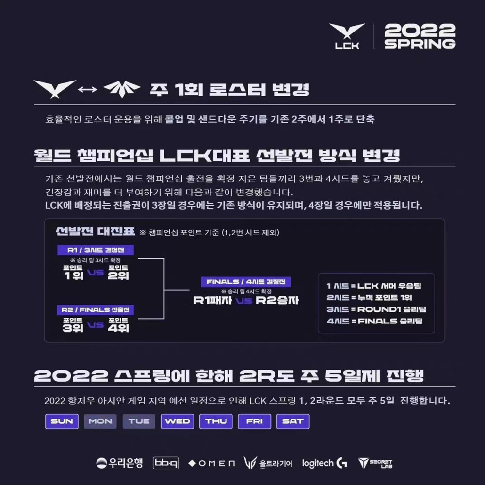 可以说LPL的最大竞争对手就是LCK赛区,最近韩媒确认了今年LCK冒泡赛赛制将会做出调整,具体的调整是效仿过去LPL的赛制选拔方式;一号种子和二号种子的选拔方式不变,依旧是夏季赛冠军和全年积分最高的队伍,三号种子则是除了一号和二号以外积分顺延的两支战队进行B05胜者为三号种子