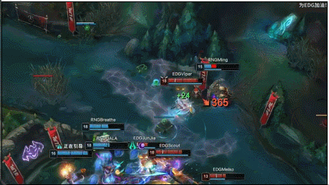 但之后RNG突然给了一波机会,野区巨大失误抓有金身的女坦被EDG支援赶到,圣枪哥一马当先打乱阵型,Viper拿下第一个人头,RNG直接付出团灭的代价全部阵亡。