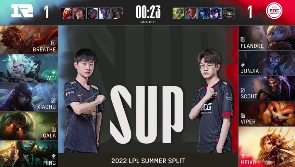 温水煮青蛙,EDG连拿两个小龙,后下路又抓死了船长,回家整补后Scout野区单杀小虎,EDG开龙RNG来接团被EDG又击杀三个,后拿下大龙。