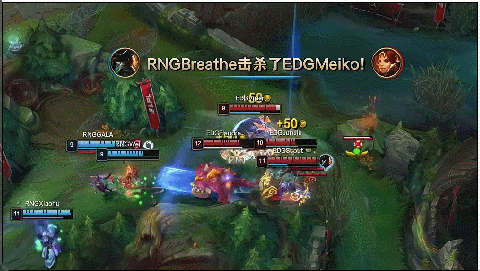 40分钟EDG再次抱团率先Rush大龙,RNG没人能进场的情况下,Junjia手握惩戒的情况下被船长一个大招抢掉大龙,随后双方直接转远古龙,小虎一个大招封路效果非常好,RNG成功拿下远古龙,后一波团战厄斐琉斯爆炸输出拿下三杀,RNG一波击杀四人后直接抱团一波结束了比赛。