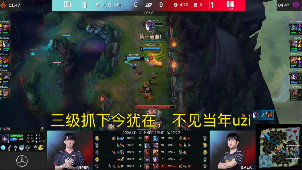 前言:非常喜欢观众们锐评EDG的一句话:“王朝总是从内部开始分崩离析,而非版本更迭”;作为S11新科冠军,淀粉们还没等来EDG在LPL内展现统治力,夏季赛的颓靡势头就给了他们当头一棒。7-4的战绩或许位于上游,但谁不想让他们更完美呢?7月23日,RNG与EDG强强对抗,赛前多方一致看好状态更佳的RNG,结果也并未爆冷,但过程之惊险一看便知,可能这便是后UZI时代RNG对EDG的“血脉压制”。