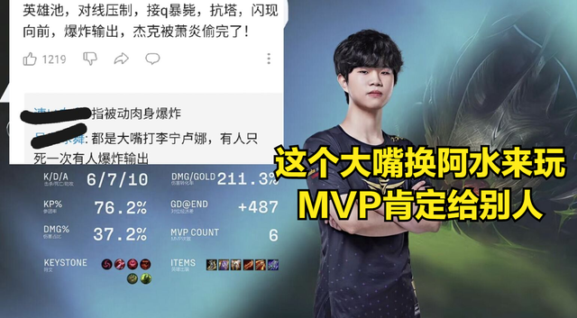 比如说小P的英雄池跟阿水很相似,大嘴,厄斐琉斯,德莱文,塞纳都是小P在职业赛场当中拿出来过的,当然在跟LNG的比赛当中小P还把阿水其余的人设偷了,对线压制,接q暴毙,AD抗塔,闪现向前,爆炸输出,当然也有网友调侃阿水的MVP没有被偷走,因为如何今天的大嘴是阿水玩的肯定没有MVP,而小P无论如何团战如何暴毙都有MVP。