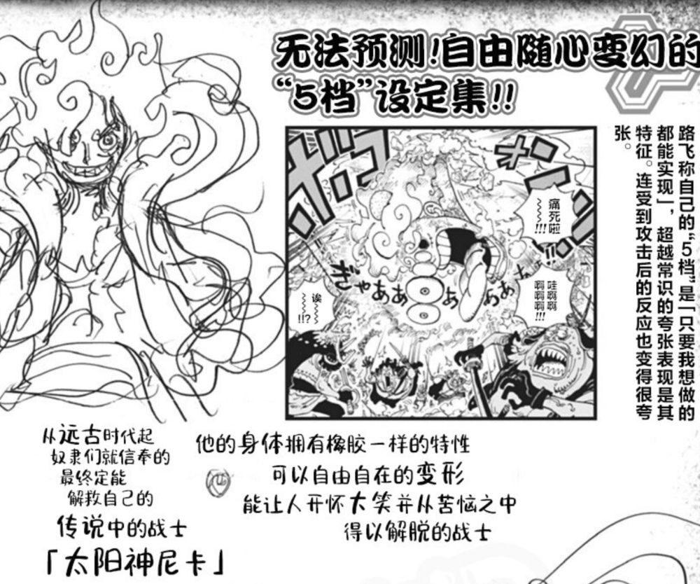 最近海贼王官方发布一组关于五档路飞的资料合集,其中有不少重要的信息。五档既是路飞的目前的“最强档位”,也是整个海贼王主线的关键设定,毕竟“太阳神尼卡”的故事也才出现几十话而已,后续尾田肯定会进行补充。