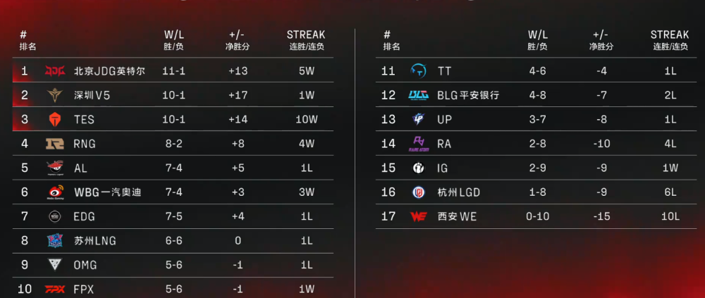 从目前的战绩来看,BLG无疑属于LPL的中下游队伍。BLG剩下的四个对手分别是FPX、V5、OMG和WE。V5目前是LPL第一梯度,BLG以目前的状态去碰V5,胜率极低。FPX和OMG也不是省油的灯,排名也比BLG高。要说比较稳的一分,只能是倒数第一的WE这场,就算这场比赛赢了,BLG也只是拿一分罢了,剩下的三分怎么办?