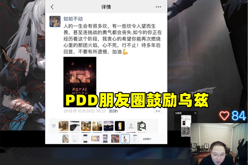 在PDD的一次直播中,他给粉丝们看了他在S8赛季发的一条朋友圈,总共有一段话,起初PDD解释道是写给当时败给G2的RNG的。但在一再回味之后,他也是想起来了,这一席话是单独写给乌兹的,原因很简单。PDD:乌兹当时被万人捧脚,然后变成万人唾弃,他当时火到什么程度?连动漫里面都有他。对于这样的高的一个身份忽然跌落,PDD不禁联想到了自己。