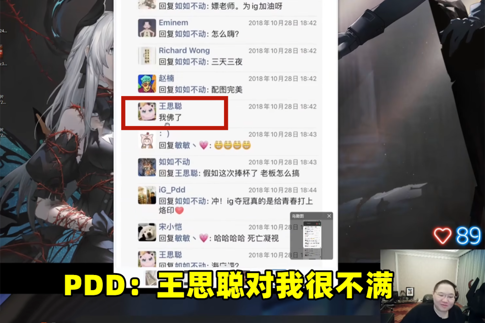 而在这一条朋友圈下,PDD的前老板王思聪也是回复了三个字:我佛了!PDD也是直言:王思聪当时对我很不满。残影也是查询了一下时间,PDD发布这条朋友圈时,IG已经成功击败了G2晋级决赛,按理说PDD此时的朋友圈应该和他评论区说的一样,是为IG战队加油,然而他却将此段话送给了乌兹。也难怪王思聪当时会回复佛了,PDD这完全是按套路出牌啊!
