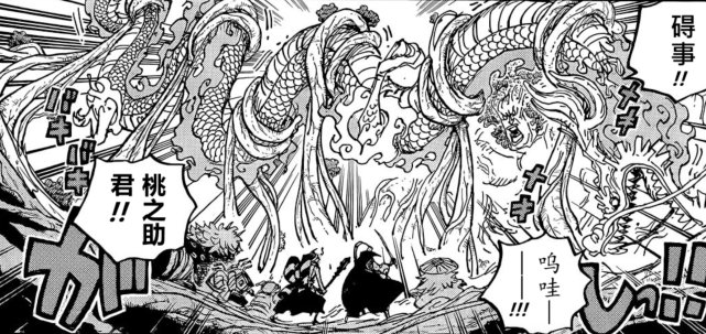 上一话桃之助单挑大将绿牛,但是被瞬间缠绕而无法挣脱,显然此时的桃之助害得继续发育并开发蛟龙形态的能力,未来才有跟大将一战之力。