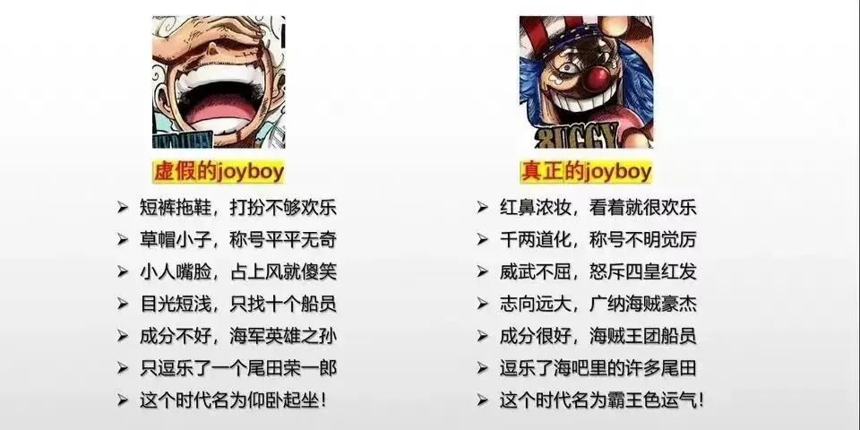 在读者们的争议拉锯中,同样存在反对之声,认为名称改动不至于影响漫画基调。其实《海贼王》的核心悬念始终是作品名“one piece”,如果将路飞的身份与结局绑定,例如“只有Joy Boy才能取得one piece,所以上任海贼王罗杰找到大秘宝也只能大笑而归”,整部作品就显得格外讽刺,但这毕竟是尚未发生的情节。如果只将“尼卡形态”理解为一次普通的“开挂”,就没到伤及作品内核的程度。