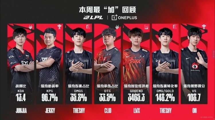 LPL第六周最“加”选手出炉:Theshy两项数据第一,FPX下野上榜