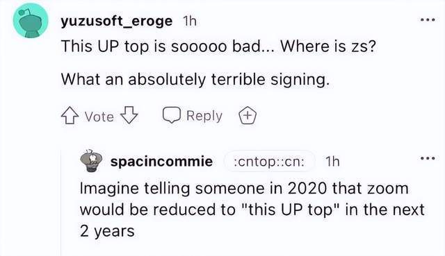 还有海外网友表示:zoom可能是目前LPL最有害团队的上单,甚至用PandaC来替代zoom,都可能是一种升级。以及:UP的上单太糟糕了,ZS在哪里?买下zoom是非常糟糕的签约。以及:zoom实际上与wayward相差甚远,如果他明年还能找到战队,那么LPL真的可以别办了。