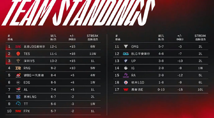 此时LPL的春季常规赛,也基本上来到了末尾了,大部分的队伍都仅剩下几场比赛要打,打完就可以看看自己到底是继续打,还是直接放假。现在LPL里面一共有17支战队,只有10支队伍可以进入到最终的季后赛,而后面的7名将会被全部都淘汰掉,目前来看,WE是基本上没什么机会了,这支队伍已经拿到了10连败,堪称一胜难求。