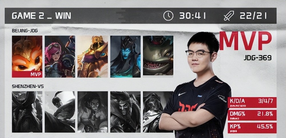 在JDG与V5的这场比赛中,JDG上单369选手的发挥异常惊艳,两场比赛不仅都单杀了对方上单Rich选手,并且痛快大肆斩获两连MVP,让人看到了其可以竞争一阵上单选手的实力。无论是在团战细节拉扯处理或者是边线带线以及对线博弈等方面都是十分出众,完全碾压了对手,一场格温一场纳尔压得Rich哥完全抬不起头,也是送给了V5战队第二败。