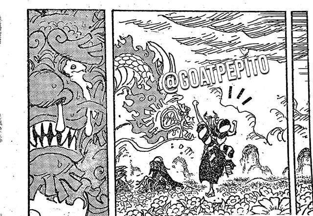 光月寿喜烧,罗宾,罗三人通过长长的阶梯,他们很快就发现有光,光从通道照射出来。罗宾很快就来到光照射的地方,原来是一块巨大的玻璃,他们已经处于和之国的海底。巨大的玻璃将海水隔绝,这里的遗迹才会保存完好,这是一座古城的废墟。光月寿喜烧对罗宾讲述了和之国的历史,这个废墟就是八百年前留下来的旧和之国。