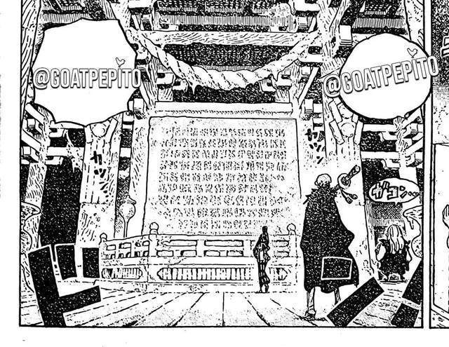 和之国果然藏有一块红色石碑,它就埋藏在和之国的地下,这个秘密只有光月家族知道。不过在凯多统治和之国时,旱灾杰克也找到了这块红色石碑,他是鱼人,潜入海底也能发现红色石碑。因此凯多是知道这块红色石碑的,光月寿喜烧知道通往地下的办法。罗也出现在这里,他在宴会厅上没有看到罗宾,就过来找罗宾了,罗宾还以为罗是属狗的,跟着自己的气味找到这里。