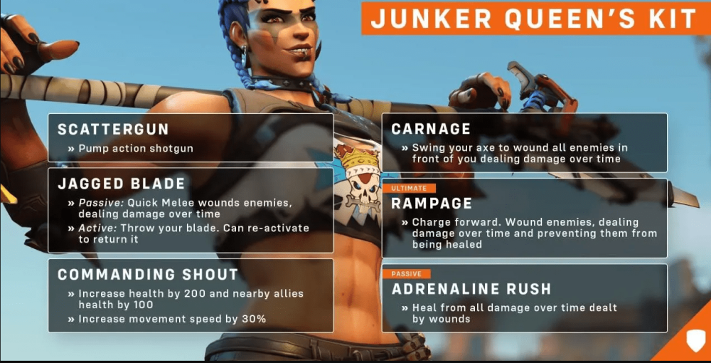 在《守望先锋》“归来”版本的Beta测试中,开发组放出了围绕改善T游玩环境而大幅改动后的一个新重装英雄:“渣克女王”,众所周知“归来”版本减少了一个T位,并且增加了T的战斗能力,新的改动让游戏的战斗环节更加激烈,对个人实力的要求更上一个台阶,而“渣克女王”就是顺应归来版本改动意图而推出的强势新重装英雄。