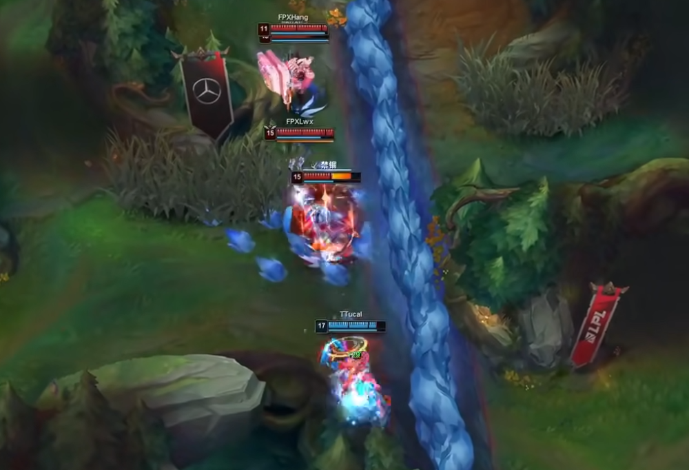 第一场比赛里面,大家本以为FPX可以轻松拿下,上单summit拿出刀妹来counter纳尔,直接4级打出单杀,让大家对FPX充满了期望。但是双方针对的点不一样,TT中单ucal的瑞兹却非常的灵性,时不时的就往下路跑,把lwx这条路直接打崩了。现在的版本就是比较偏向于下路,所以TT很轻松的拿下了第一场比赛。