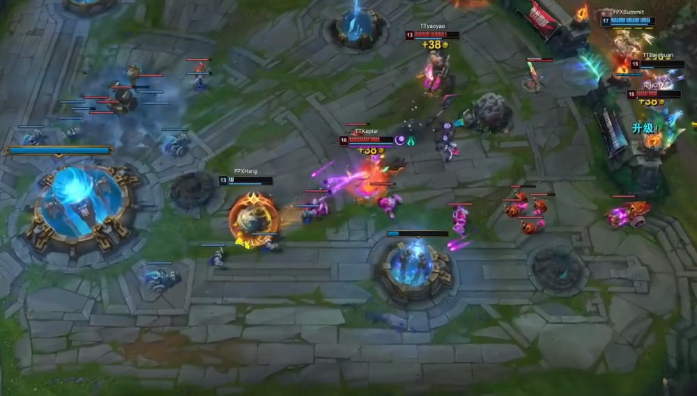 TT率先拿到电龙魂,但是FPX这个阵容韧性很足,毕竟有厄斐琉斯的存在,而且还是lwx亲自操刀。但也偏偏就是出在这一波的问题上面,FPX不知怎么搞的,总是会被TT给包抄,自己在中路想要带兵线过去拆高地,但是TT哪儿会给这个机会,波比直接锤飞队友后,留下了lwx和辅助,在这两人被击杀之后,TT也想要过去一波结束比赛。