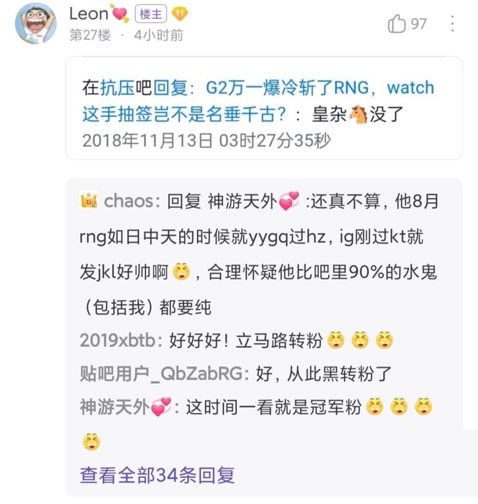 相信很多电竞观众都知道抗压吧,最早可以说是LPL电子竞技论坛中热度最高的一个,抗压吧的建立其实是为了对抗之前的宇宙天团WE粉丝,抗压吧最开始的状态可以用瞎骂两个字来形容,里面的成员都非常暴躁,动不动就是脏话连篇问候家人的那种。