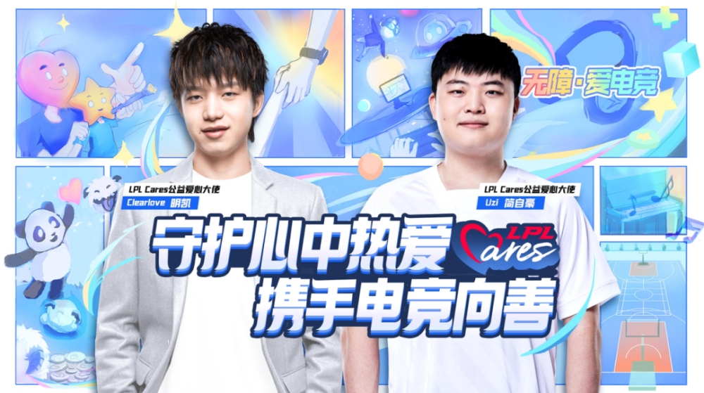 今年5月,LPL发起“无障·爱电竞”的关怀困境人群活动,为每个电竞梦想所助力。在这次大会上,LPL宣布,传奇选手明凯和简自豪担任LPL Cares公益爱心大使,传递电竞向善的精神所在。