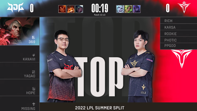 JDG对阵到V5战队,毫无疑问是一场十分精彩的比赛。这两支队伍,现在都是LPL的顶级队伍,从选手的配置上面也都是最强的。但是在比赛开始之前,可能大多数的网友都认为,V5取胜的概率要大一点。首先这支队伍的中路是rookie。上路的rich又是今年LPL的顶级上路之一,面对369肯定不怂,怎么看都能打的过呀。