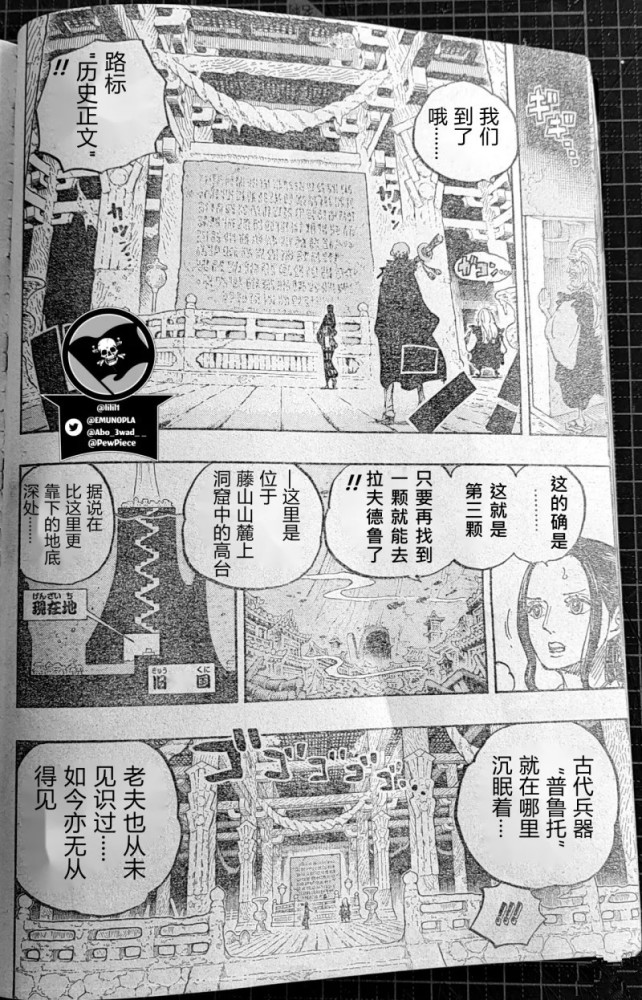 之后他们终于到了此行的目的地,那就是存放路标历史正文的所在,这是路飞他们得到的第三块路标历史正文了。而古代兵器冥王就存放在更深的地底。