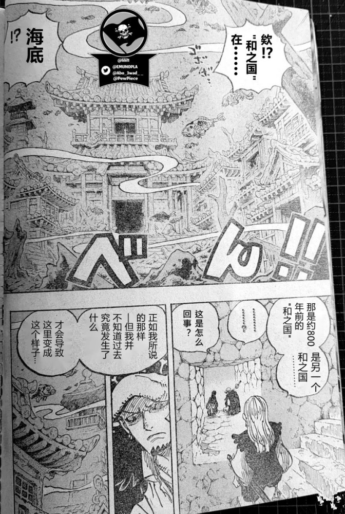 原来海底还有一座和之国,这是800年前的和之国,不过光月寿喜烧也不知道当年的和之国为何会出现在地底。