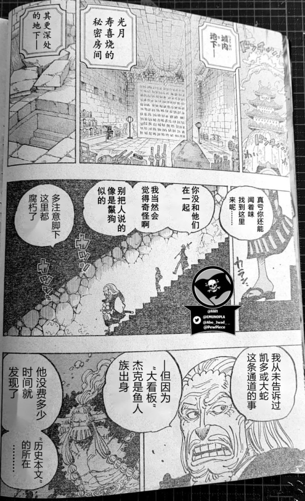 虽然说光月寿喜烧并没有把这里告诉凯多,但是杰克是鱼人,所以他很快就发现了和之国地下的秘密;而罗和罗宾两人发现这个秘密也是震惊不已。