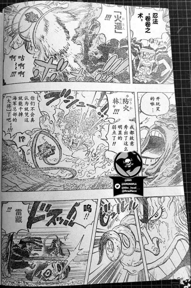 赤霄九侠这边,雷藏直接用火遁攻击绿牛,结果被绿牛的防火林挡住,并且嘲笑,这样的攻击是不可能干掉海军大将的。