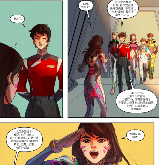 这同样也符合《守望先锋》归来的世界观,在曾经曝光的漫画《新鲜血液》中,就详细阐述了Dva再次回到守望先锋时的状态,现在的她和曾经已经有了不小的改变,拥有着为世界和平献出一份力量的热忱。