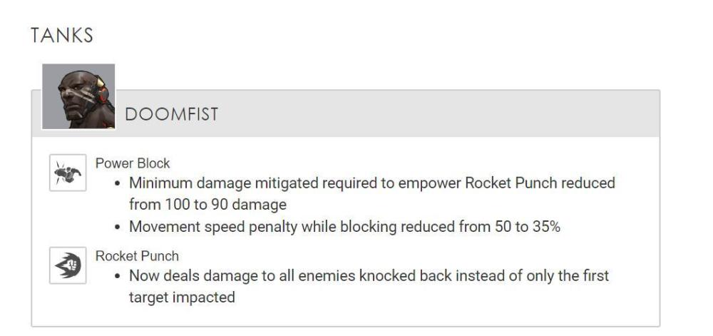 最近守望归来的新内容还真不少,不少英雄都有调整。首先是大伙都很关心的铁拳,可是迎来了一轮不小的加强。火箭重拳以前需要100伤害才能充能,现在降低到90了。开启防御的时候本来有50%的移速惩罚,现在直接变成35%。以及最让人震惊的——火箭重拳以前虽然能击退多个人,但是只能对第一个造成伤害,现在他可以对所有击退的敌人造成伤害!